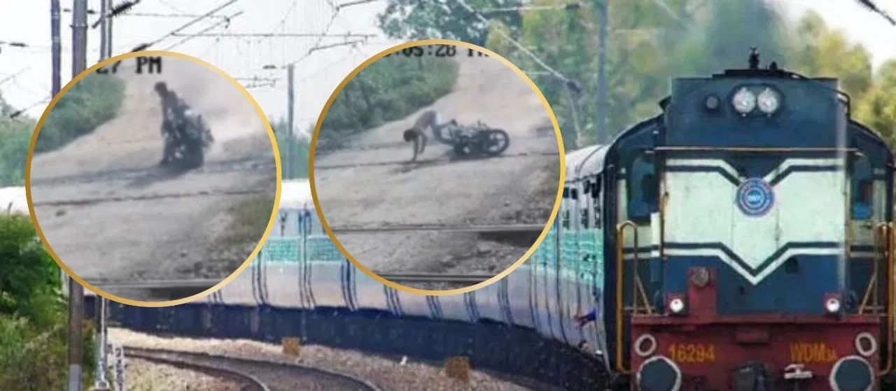 वीडियो में दिखता है कि बाइक सवार युवक रेलवे फाटक पार करता है और जैसे ही ट्रैक की ओर बढ़ता है उसकी बाइक फिसल जाती है. इसके बाद वह तेजी से उठता है और बाइक को संभालने की कोशिश करता है. इसी बीच, पीछे से आ रही ट्रेन की चपेट में वह आ जाता है और उसकी वहीं मौत हो जाती है.