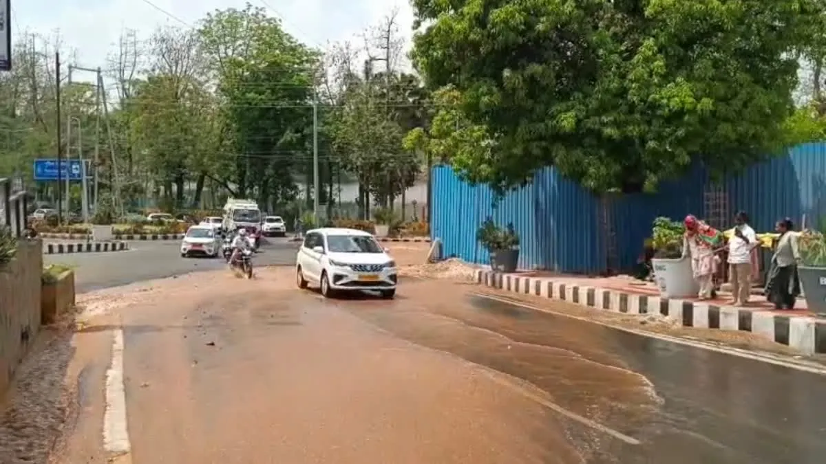 Bhopal News: लोक भवन के सामने फटी पाइपलाइन, धंस गई मुख्य सड़क; जलभराव के बीच रेंगता रहा ट्रैफिक
