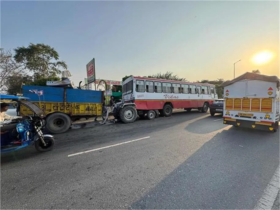 बस चालक ने बताया कि वह यात्रियों को उतारने के लिए बस को साइड में लगाए हुए था, तभी पीछे से ट्रैक्टर ने टक्कर मार दी। घटना के बाद मौके पर अफरा-तफरी मच गई। सूचना मिलते ही डायल 112 और शहर थाना पुलिस मौके पर पहुंची। गंभीर रूप से घायल ट्रैक्टर चालक को टोल प्लाजा की एंबुलेंस से तुरंत हिसार के अस्पताल भेजा गया। फिलहाल घायल चालक की पहचान नहीं हो पाई है। पुलिस ने मामले की जांच शुरू कर दी है और हादसे के कारणों की पड़ताल की जा रही है।